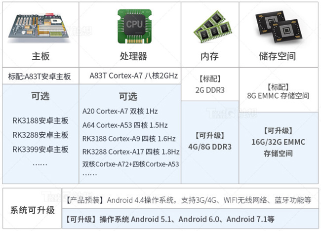 ·標配為全志A64 Cortex-A53 四核64位 主頻達1.5GHz,主板為自主研發,性能更穩定,同時支持配置升級;