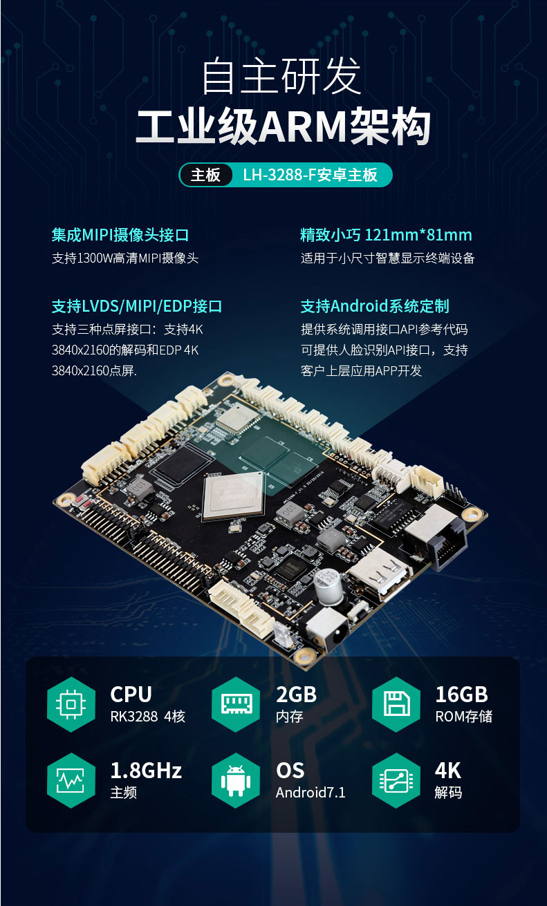 ·標(biāo)準(zhǔn)配置采用自主研發(fā)主板RK3288,運(yùn)行內(nèi)存和硬盤儲(chǔ)存分別為2G+ 16G,性能更穩(wěn)定,支持配置升級(jí),滿足出入常見長(zhǎng)時(shí)間運(yùn)行工作狀態(tài);